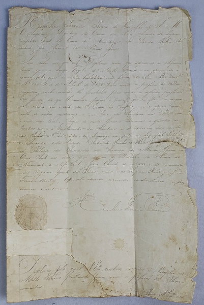 • SENADOR VIRGILIO MARTINS DE MELLO FRANCO  ORDEM ASSINADA PELO IMPERADOR DOM PEDRO II PARA REMOVER A PEDIDO O JUIZ DE DIREITO VIRGILIO MARTINS DE MELLO FRANCO DA COMARCA DE RIO NOVO PARA A DE BARBACENA. TAL PEDIDO FOI ATNEDIDO LOGO APÓS O MAGISTRADO TER HOSPEDADO O IMPERADOR EM SUA RESIDENCIA DURANTE A VIAGEM A MINAS GERAIS DE 1881. EXCERTOS DO TEXTO: Hei por bem renovar a pedido o Juiz de Direito Virgilio Martins de Mello Franco da Comarca de Rio Novo para a de Barbacena, ambas de primeira instância na Província de Minas Gerais. Manoel da Silva Mafra do meo Conselho, Ministro e Secretário de Estado dos Negócios da Justiça assim o tenha entendido e faça excecutar. Palácio do Rio de Janeiro em vinte e oito de janeiro de mil oitocentos e oitenta e dois, sexagésimo da Independencia e do Império. Assina o  Imperador Dom Pedro II e o Ministro da Justiça Manoel da Silva Mafra (Conselheiro Mafra politico Catarinense ). COM ESTAMPILHA. 37 X 23 CM