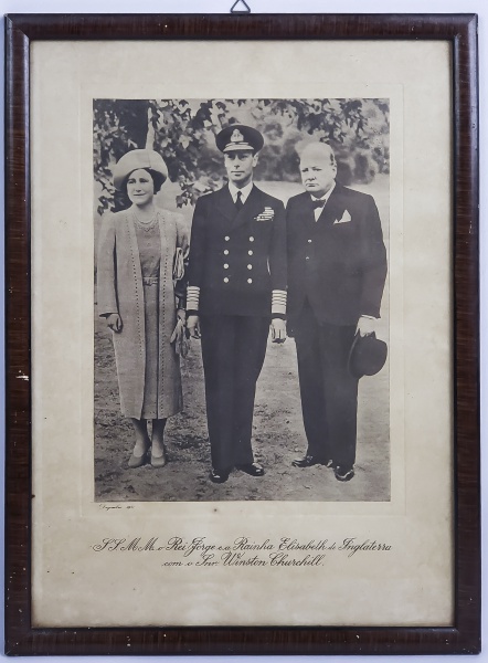 • REI GEORGE VI,  RAINHA ELIZABETH (PAIS DA RAINHA ELIZABETH II)  E WINSTON CHURCHIL EM RETRATO MAJESTÁTICO  TOMADO EM  1940 POUCO ANTES DA ECLOSÃO DA II GUERRA MUNDIAL. O RETRATO FOI FEITO POR  WENDELL WILKIE FAMOSO FOTÓGRAFO LONDRINO QUE CUNHOU A FRASE> OS BRITANICOS TEM UMA SORTE QUASE MILAGROSA COM SEUS LIDERES  ATUAIS (REFERINDO-SE AO MOMENTO MUNDIAL QUE CULMINOU COM A SEGUNDA GRANDE GUERRA). COM  LEGENDA EM PORTUGUES, OFERECIDA AO CORPO DIPLOMÁTICO BRASILEIRO. 39 X 29 CM.
